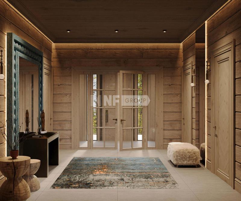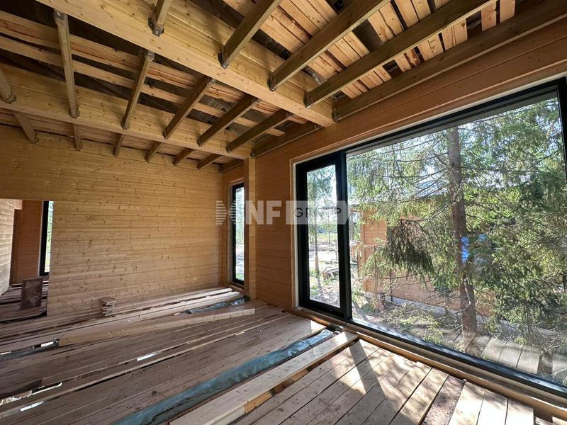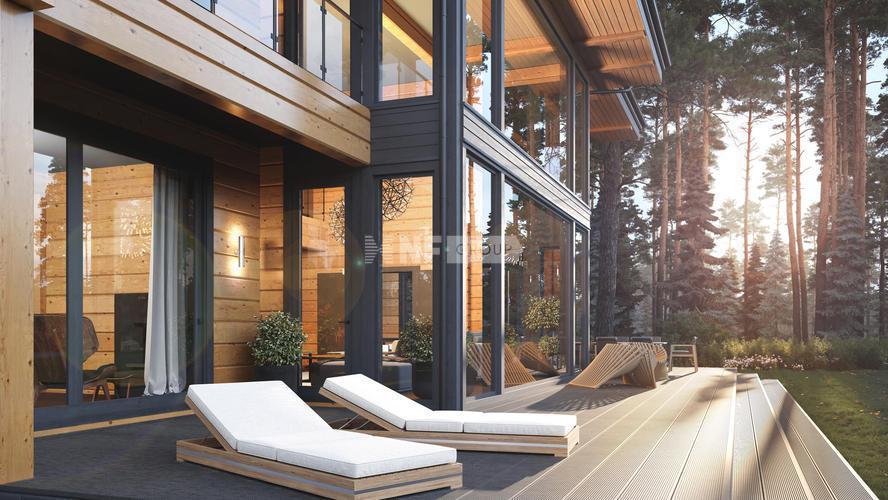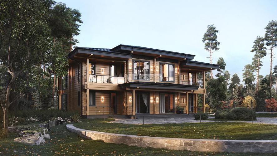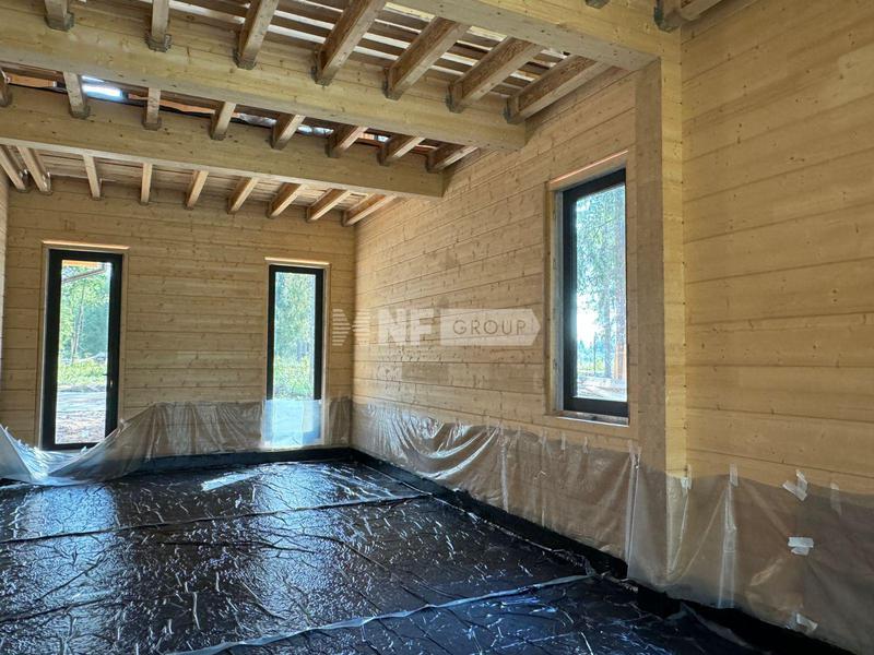 Резиденция выполнена из клееного бруса.